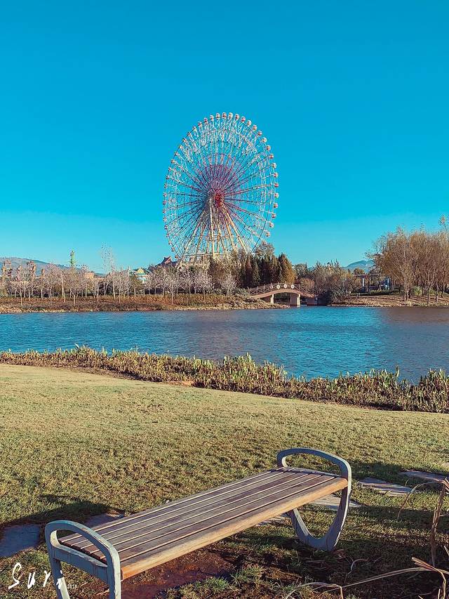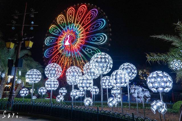 现在去欢乐世界还能多一个重磅福利,从圣诞到元宵,古滇星光节在欢乐世界为游客做梦,一场星光璀璨的梦境:夜幕降临,由牧星使者(这个名号也太美了吧)点亮昆明湖沿线的灯光装置,顷刻间,万盏灯光与摩天轮齐亮,乐园变得一片璀璨夺目。摩天轮下面的那颗kiss tree,需要有情人在树下拥吻才能点亮,情侣们必打卡!
