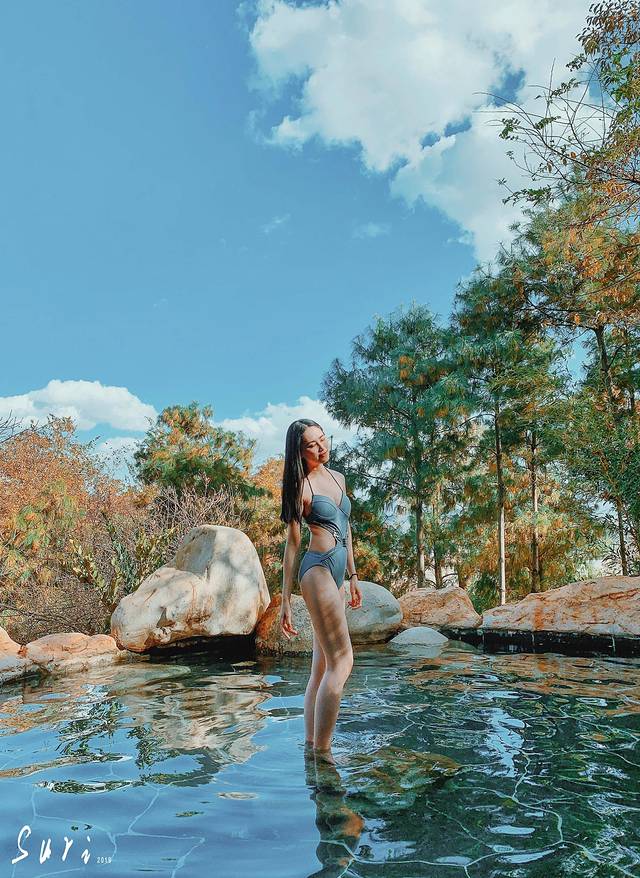如棋盘似的“池水疗池”,很适合拍摄泳装照。