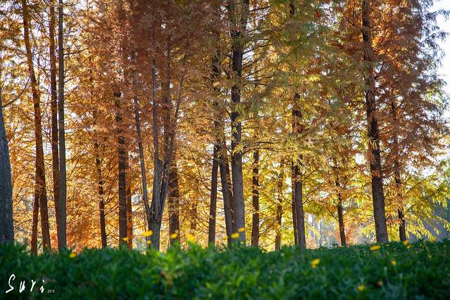 从游客服务中心通往湿地公园的栈道旁,是一大片的樱花谷,樱花盛开的时节,一定要来看看秒速五厘米的浪漫。