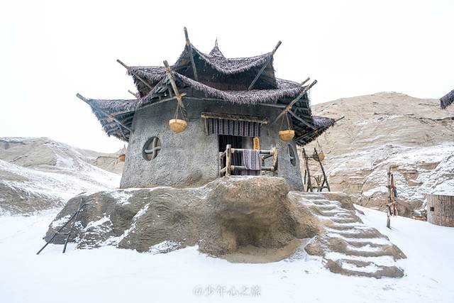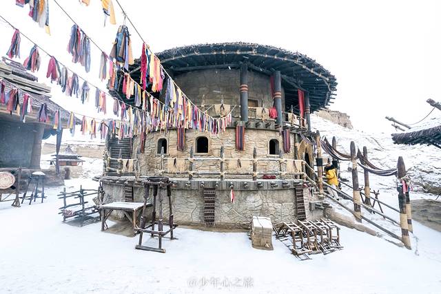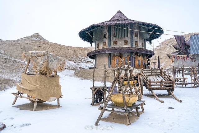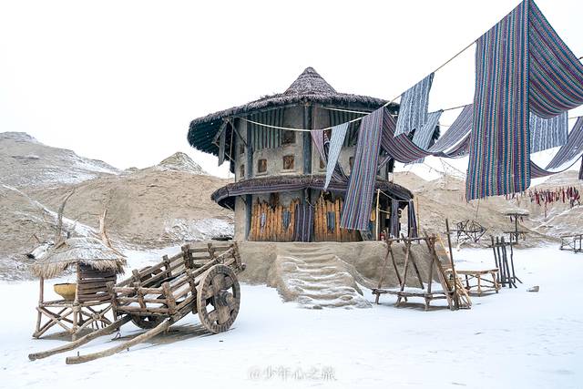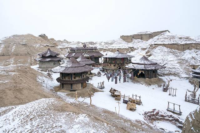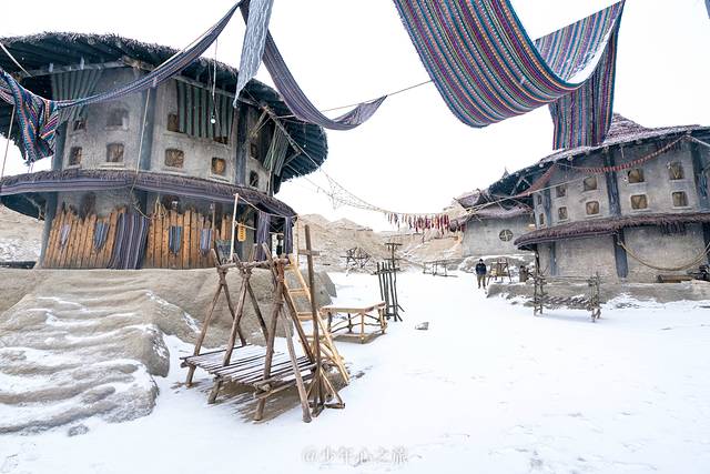 雪花装饰下的影视长廊、茅草亭、哨塔,也呈现出了独特的古韵,没有游客的喧嚣,一片安静祥和,岁月静好的样子,看着这些建筑,让我回忆起了我喜欢的影视剧中那些经典永恒的武侠片段,也正因为如此,这里已经成为了影视剧拍摄的天堂,再加上方圆50公里之内的山川、湖泊、戈壁、荒漠、胡杨等优越的自然资源,也难怪这里频繁的受到了各大导演的喜爱,著名影视剧“无人区”,“海上牧云记”,“七剑下天山”等等都在这里取过景。