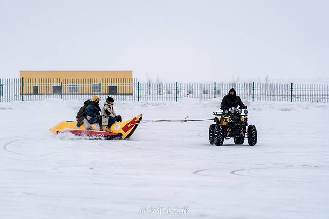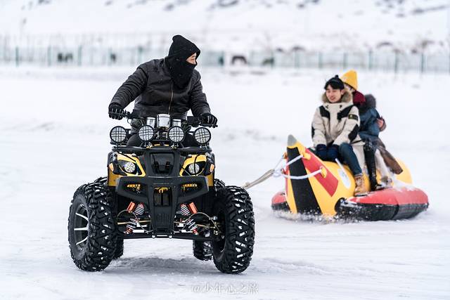 “独库秘境,亿年奇观”,荣登国家地理杂志,也是独库公路的第一景,来独山子怎么能错过大峡谷呢,这里是电影《飞驰人生》的拍摄地,参观大峡谷之前,被门口的雪上香蕉船吸引了,二话不说,立马放下背包上了香蕉船,三人一组,一辆越野车一条绳索,就这样开启我们的“飞驰人生”,不得不说还是挺刺激的,尤其是坐在最后的朋友,有更大幅度的移动距离,来一段雪上的速度与激情开启我们的大峡谷之旅。