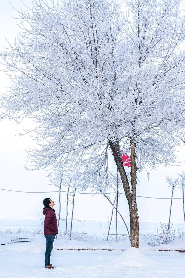 我们早早来到了滑雪场,幸运的遇上了雾凇,还有银装素裹的“圣诞树”,当时圣诞节正临近,感觉老天提前给我们过了一个圣诞节一般。而此时太阳公公也露出了个头,整个世界从一片灰白色变成了一片银白色,如此洁白纯净的雪真心是第一次见到,也难怪很多人把这里的雪和瑞士的雪相媲美,就算不滑雪,单看这里的雪景也值了。