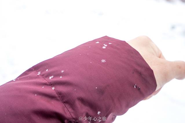 又一次习惯性的抖雪,余光不经意的一撇,竟然发现雪花的形状是六边形的,这一次我没有抖掉白雪,而是细细的打量着它的形状,原来真的有六边形的雪花,上帝巧夺天工之手,制造出了如此艺术般的雪花,让我一扫天气带来的阴霾,欢天喜地的伸手拥抱白雪。这是我目前见过的最漂亮的雪花我用相机记录了这一刻的浪漫,之后每每下雪,我都会伸手接住雪花,而新疆之旅的后几天,再也没有见到比这更漂亮的雪花了。