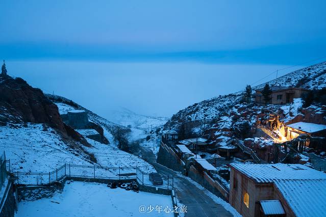 夜幕降临,华灯初上,放完行李后出来的我们,刚好遇到了万里云海,云海已经将我们来时的路“淹没”,只在海天相接处留下了一道白色的云带,入夜的阿拉山尤为的清凉,冰冷的蓝调和房屋内暖黄色的灯光形成了鲜明的对比,而就在这荒郊野外的冰天雪地里,我们钻入了暖和的室内,来个热腾腾的温泉浴,还有什么比这更幸福的事情呢?