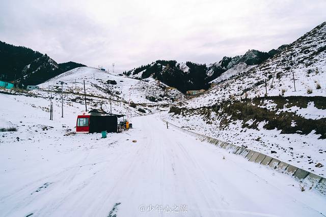 滑完雪之后我们前往独山子40公里外的阿拉山温泉疗养院,正好用温泉治愈下我们身上滑雪遗留下的酸痛,阿拉山海拔近1800多米,我们的车沿着天山北麓的山脉前行,一路攀爬一路美景,最美的风景在路上,感觉像是闯入了大山深处,今晚势必要在大山的怀抱中安稳地睡个觉。