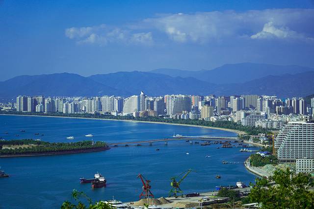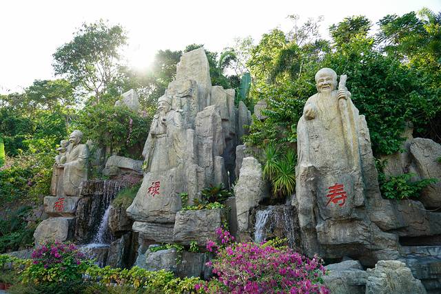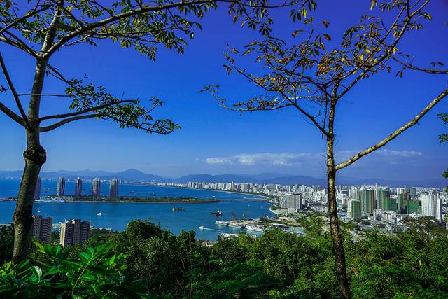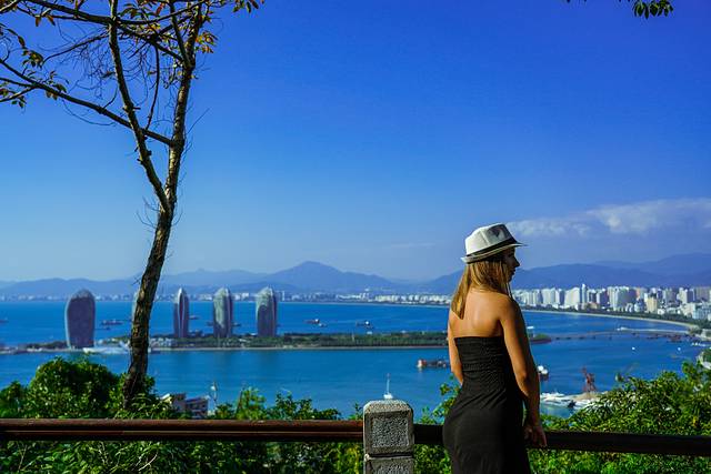 逛了街,给家人朋友买了许多当地特色的伴手礼准备带回去。我们顺道去了“鹿回头”公园,“公园”两个字是我硬加上去的,或许是因为它的美不胜收。鹿回头景区位于三亚市南三公里处,这里三面环海,大小有山峰五座,悬于海水之中,犹如一只坡路,“鹿回头”因此得名。