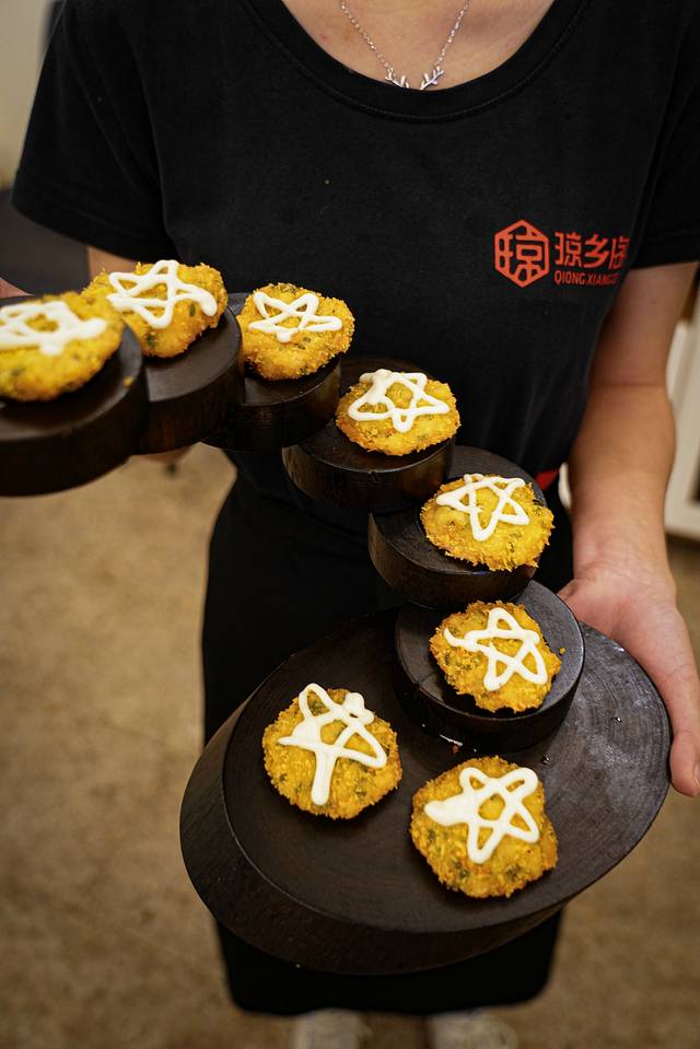 这家店是民宿老板推荐的,地处于三亚湾路与机场路交接口的位置。如果不是当地人推荐,打死我也找不到藏得如此之深的海南菜餐厅。走到店外,就发现这家老板真是经营有道,连店门口的位置都修得如此别致,还放上了不少座椅,供食客在外就餐。餐桌周围的廊柱上,缠满了绿色的藤状植物。店家的构思极其巧妙,竟然能想到用植物来为顾客纳凉。活该人家赚得盆满钵满!
