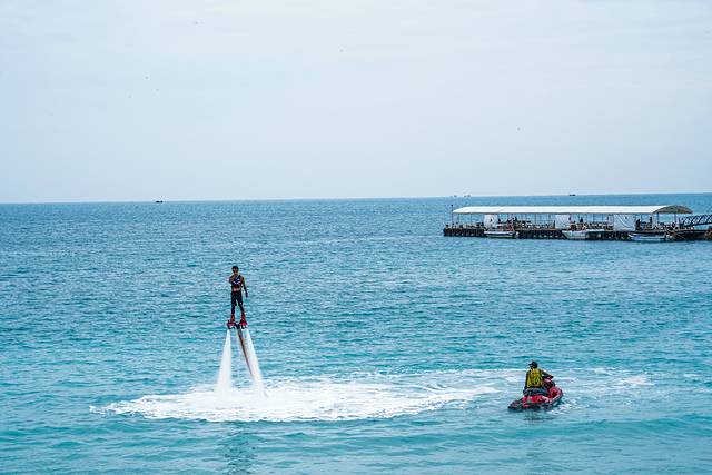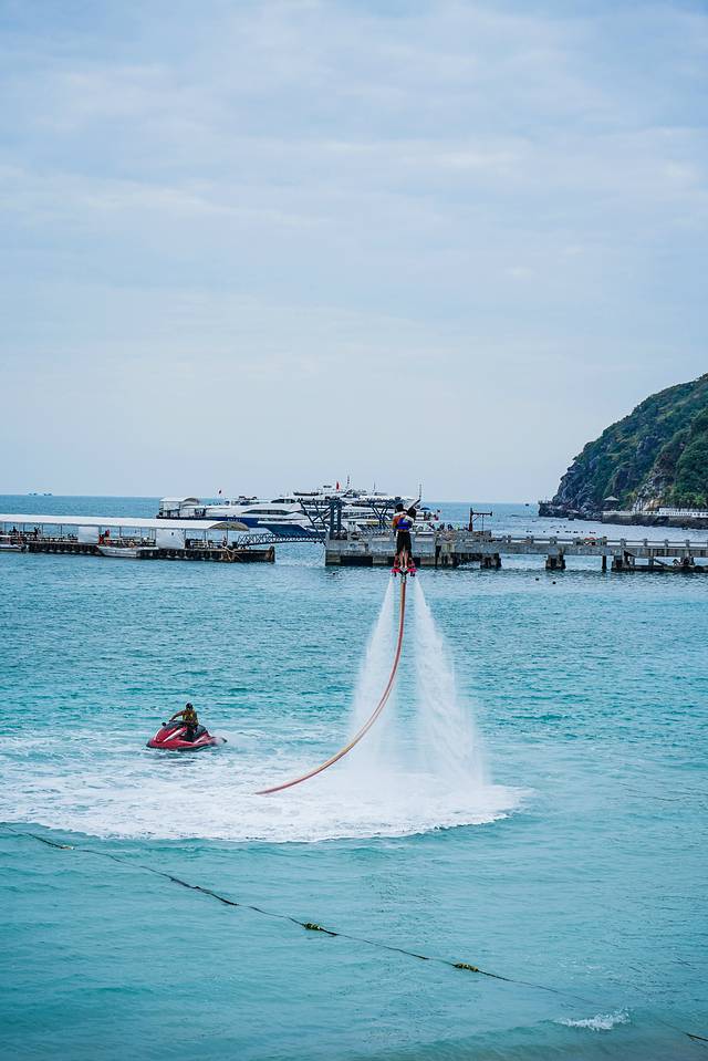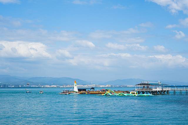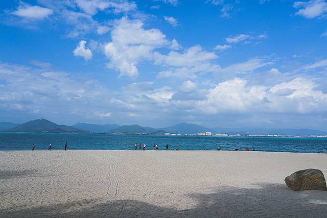 三亚果真是冬日度假的必选之地,温暖湿润的空气令人极度舒适,蔚蓝的大海清澈无比,与淡蓝的天空自然的衔接在一起,呈现出渐层的蓝。朵朵白云浮在空中,娴静缓慢的跟随地球的自转移动着。海滩上矗立着棵棵椰子树,在风中摇曳。树下有带着墨镜,躺在沙滩上晒太阳的旅人,手拿一个滚圆的椰子,正在吮吸着椰汁儿。海面上浮现大批人们下海游泳的身影,沙滩上也不乏打沙滩球的孩子。我只是远远的看着,便能感受到海边的人们享受时光的惬意心情,霎时间,我也不禁一笑,真是个养人的好地方。