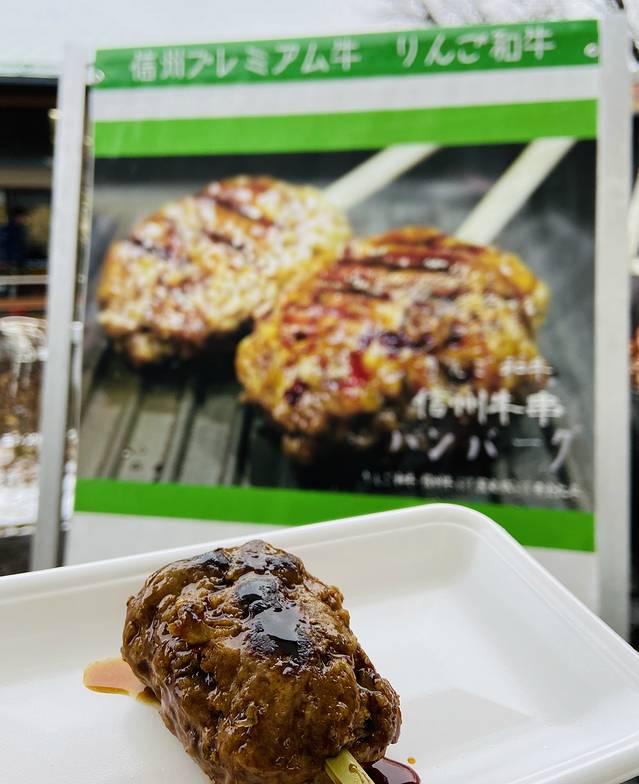 看着诱人的牛串招牌,试试信州牛做的汉堡肉。