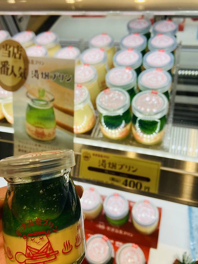 温泉街上的名物--汤畑布丁,布丁上绿油油的是哈密瓜味果酱。