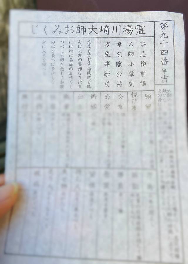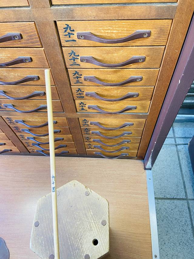 花100日元求个签,从签筒掉出的签上写有数字,在数字对应的抽屉里取出签纸。