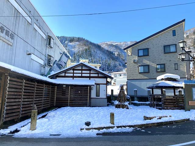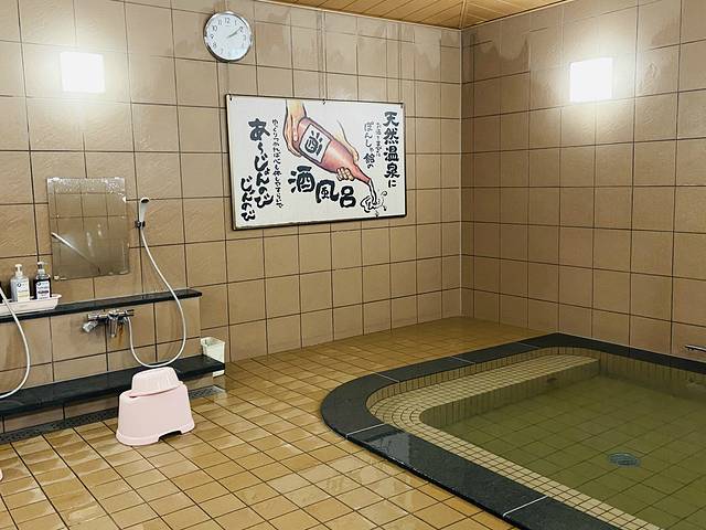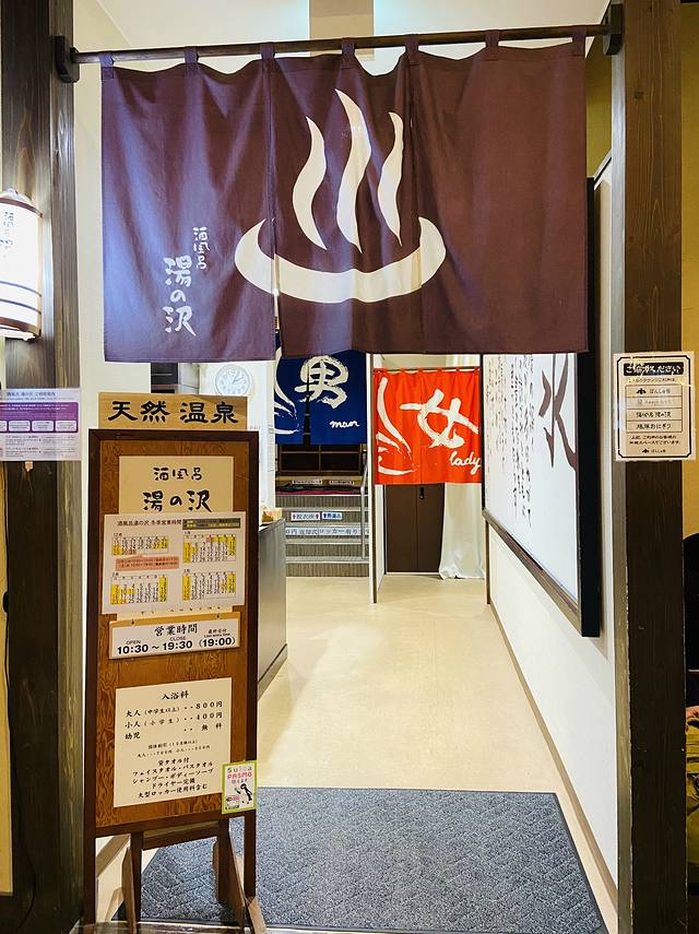 在CoCoLo 湯沢最深处,经过一个咖啡店,是天然温泉"酒风吕汤之泽" 所在,入浴费用800日元, 以加了酒的温泉为特色。