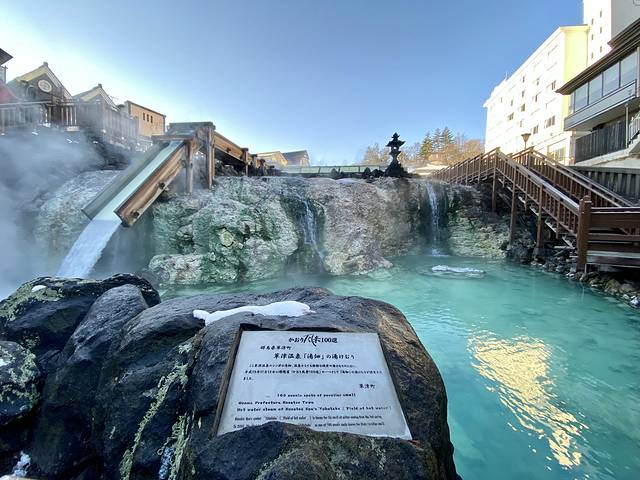 草津温泉(くさつおんせん)别名“药出汤”,起源至今已有1,000年以上的历史,以疗效极高而著称,自古便作为治病健体的著名温泉而远近闻名,温泉的自然涌出量位居日本温泉之首。
