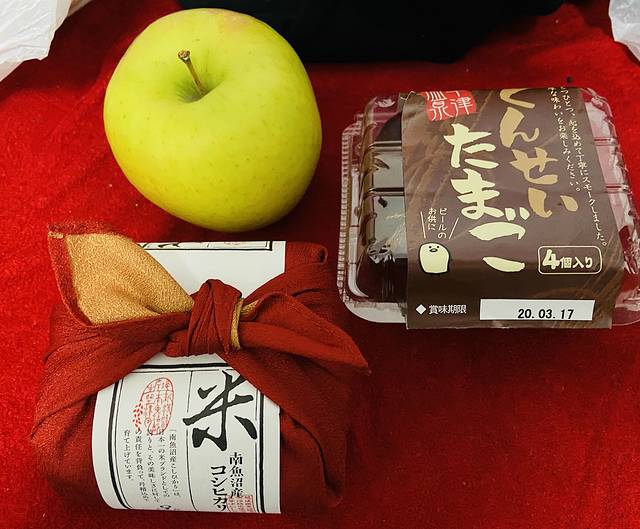 一个背包负重带回国的新潟新米,群马苹果和草津温泉蛋,也是辛苦自己了。