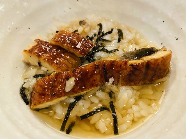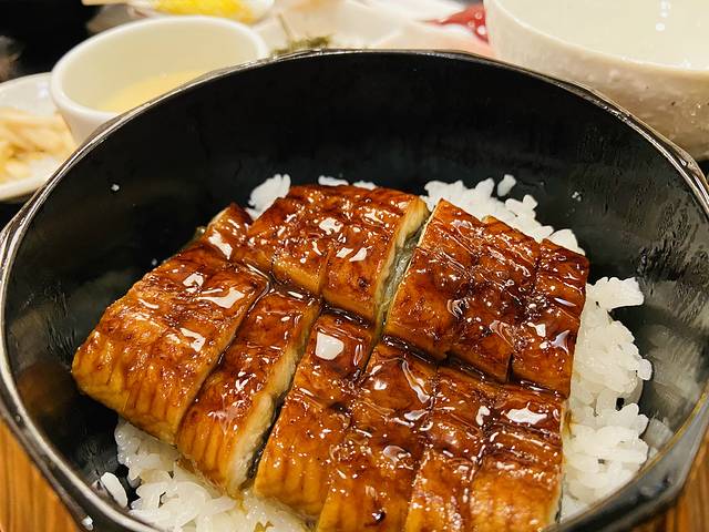 所谓三吃,是将鳗鱼饭分为三份。第一份普通吃,第二份加入海苔、山葵拌饭吃,第三份浇上出汁,配上腌菜,吃“茶泡饭”。