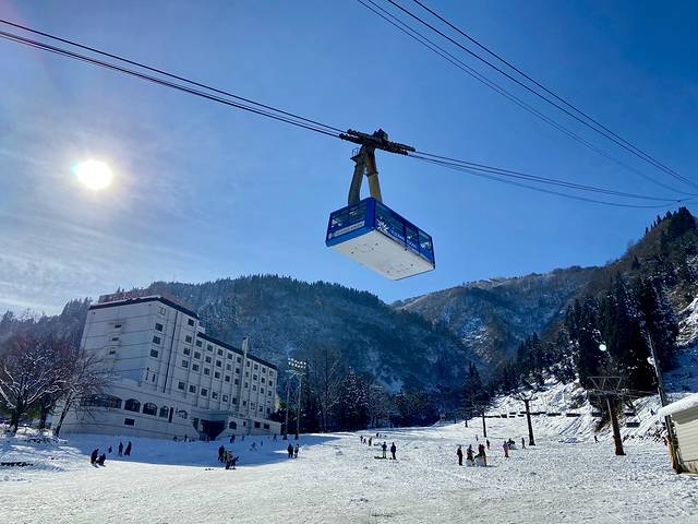 汤泽高原panorama park缆车站距离JR越后汤泽车站步行大约10分钟,在温泉街的山麓车站乘坐全球规模最大的汤泽温泉缆车,眺望冬日美景, 时长约7分钟,感受海拔1000m处的冰雪世界。