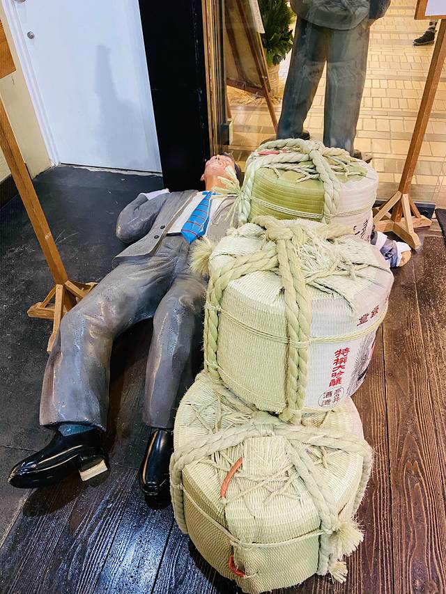 店外有个醉鬼的人形躺在地上,很是有趣。