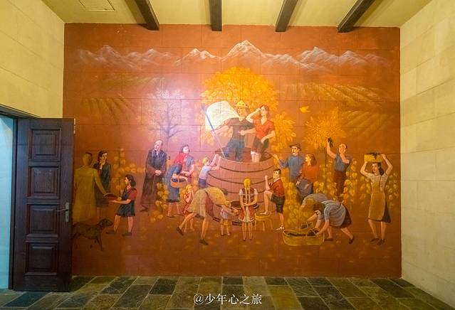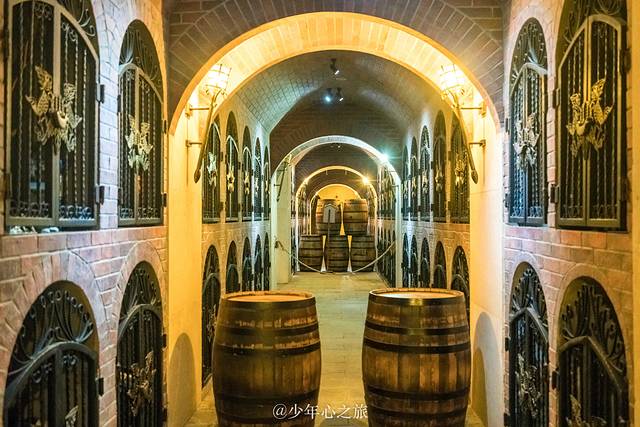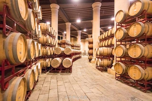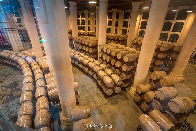 我们首先参观的是地下的酒窖,穿过艺术的壁画,走过长长的欧式走廊,就到达了亚洲最大的地下酒窖,确实给我们打开了一片新的天地,数不胜数的酒桶躺在15~16摄氏度的恒温环境中,长年累月,才酝酿出了口感极佳的葡萄酒,并输送到世界各地。