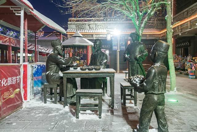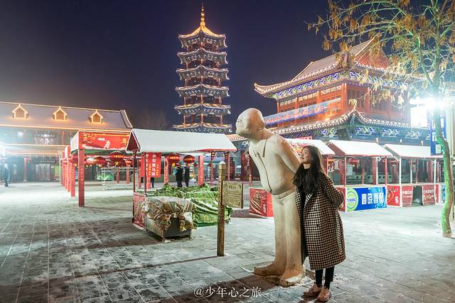 回民街内还有7层楼高的平安塔坐镇,和周边的建筑完美的融合为了一体,也不乏一些趣味雕像,让我们拍出了各种好玩的照片。