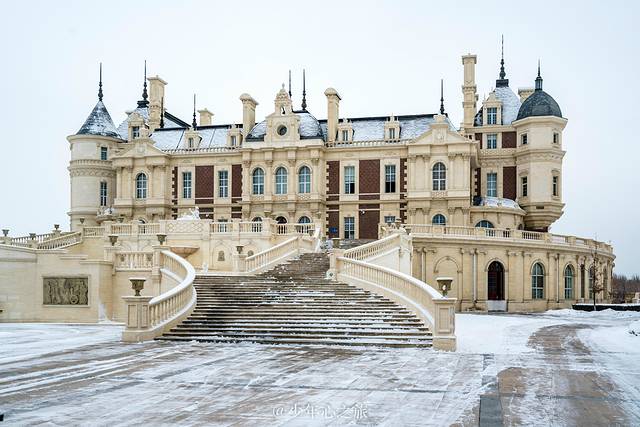 通往酒庄的路上,到处都是欧式建筑,仿佛来到了一个欧美小镇一般,而酒庄的主题大楼,竟然是一座城堡,满满的欧式风情,高贵而典雅,特别是在白雪的覆盖下,显得尤为的端庄。