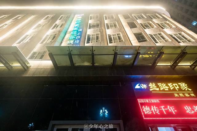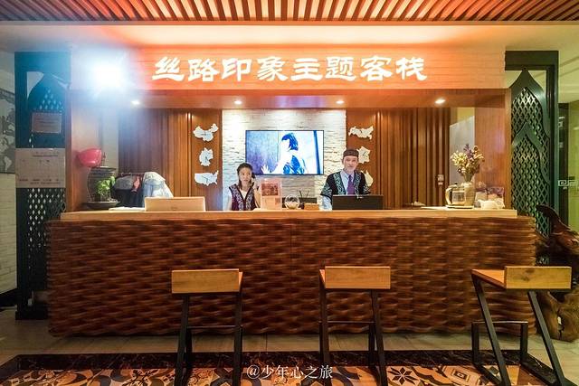 吃完美食心满意足的回到了客栈,经朋友的介绍,我们选择了昌吉丝路印象主题客栈,平淡无奇的外观下,竟有如此别具一格的内核,酒店位于海棠大厦4楼,前台的服务员身着异域风情的服饰朝我们笑脸相迎,并很快帮我们办理了入住手续。