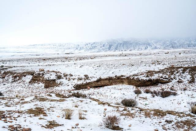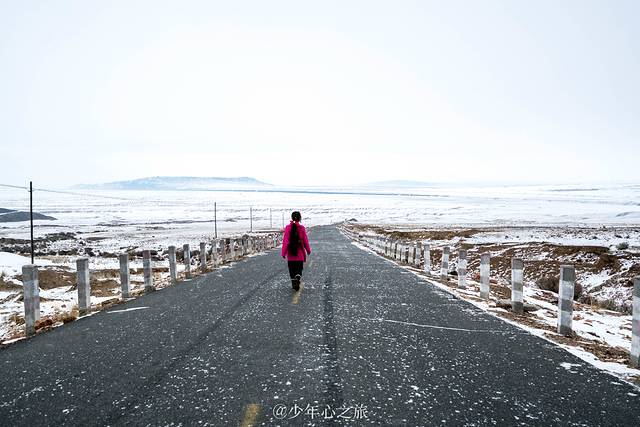 一望无际的戈壁滩,一条笔直的马路直抵天际,远方和路两旁都被白雪覆盖,陆地和天空呈现同一种白色,唯有那若隐若现的山脉将其分离,在满满一片白色的世界里,这条唯一的马路显得尤为的显眼,天地之间,孑然一人,仿佛拥有了整个世界一般。脑海中也回荡起了朴树的《平凡之路》:“我曾跨过山和大海,也穿过人山人海,我曾经问遍整个世界……”