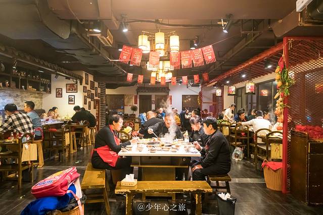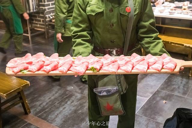 到达石河子已经晚上8点了,当地朋友带我们来吃这里排名第一的火锅店――老革命火锅,这是一家红色主题的川菜火锅店,店内装修也非常有特色,尤其是店内服务员的穿着,女服务员扎着小辫绑着红头绳,穿着绿军装,会对进门的客人说一声首长好,让人非常有角色代入感,整体感觉红红火火,非常有喜庆的氛围。