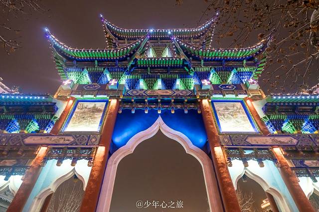 在石河子短暂逗留之后,我们又开车前往昌吉,到达昌吉已经是晚上了,正是吃饭时间,我们选择了富有地方特色的回民一条街,这里也是当地热门的美食文化街区,伊斯兰建筑同中国传统建筑风格的美妙结合,让我们一眼就爱上了这里。