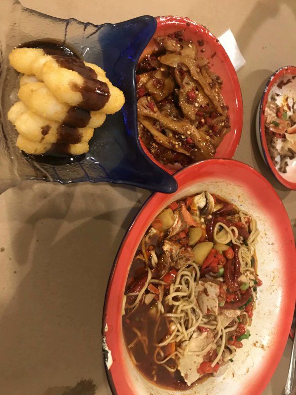 从纪念馆出来,大概是下午三点多,我们选择去有名的“老三样”排队,这家店整个南昌只有2家是正宗的,我们去的是船山路的,下午4点开始,三点多到的时候门口已经排起了长长的队伍,我们大概4:50进的,老三样我推荐“蟹脚捞面”和“红糖糍粑”,真的太好吃了!!别的菜太辣了,但这两个真的完美,到现在我都念念不忘~