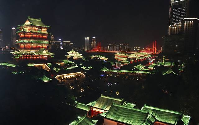 第二天睡到自然醒,大概十一点出门,第一站是滕王阁,离民宿很近,所以走着去的,路上,门票45,风景确实好,真的是“秋水共长天一色”,开张夜景图吧。