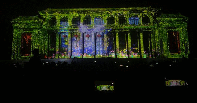 听工作人员说,这种3D投影秀即便放在全球来看也是很牛投影技术,曾经火爆故宫朋友圈、霸屏魔都头条,惊艳巴黎凯旋门、悉尼歌剧院等世界著名地标建筑,最近每天晚上都有。
