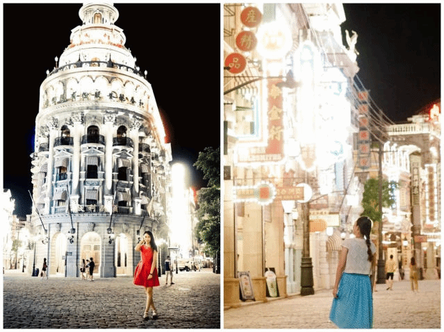 到海口旅游,个人还是建议可以电影公社一游。首先是这里的气候确实不错,二十四五度,穿件薄衫就很舒服,其次在里面拍照确实很有年代感,和朋友在街上的店里租了套衣服,好有代入感,全程各种拍拍拍,完全停不下来,整个游览过程还是很惊喜的,另外就是晚上的3D投影秀,有种彩蛋的感觉。