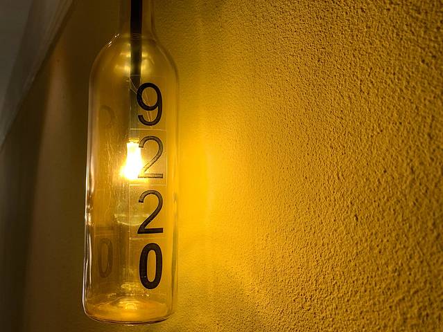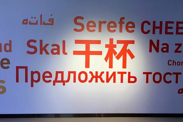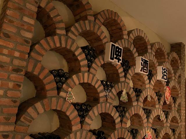 整面墙上收藏着全世界酒标,写满世界各地的“干杯”是视觉的亮点