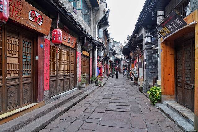 目前作为4A景区之一,商业化程度相当高,以“虹桥风雨楼”为核心,两岸隔着沱江,餐厅、酒吧、民宿林立,比比皆是,古城内通道较为狭窄,只能步行,有时仅有能并排走三四人的宽度。
