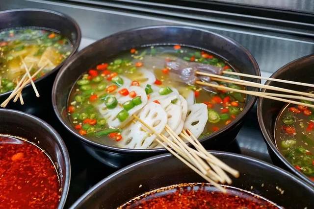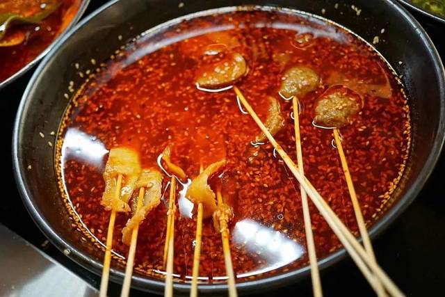 因为串串是现煮的,在麻辣红油里粘上芝麻看起来灰常诱人。