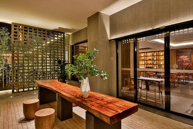 酒店大堂便是一个清幽的茶空间,架上放置着各式各样的茶叶、茶具,在此,独酌也好,以茶会友也罢,在放松身体的同时,还心灵以宁静。