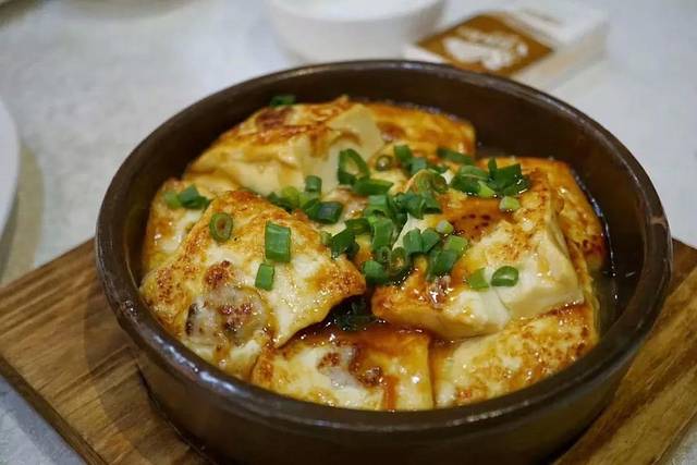 酿豆腐淋着浓稠的汤汁,包裹着咸香的肉馅,每一口都过瘾。