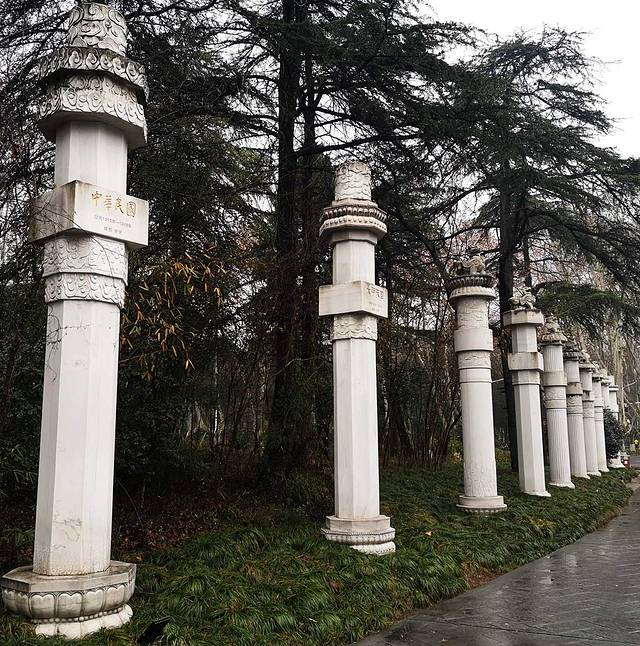 路上没有碰到几个人,终于看到了十朝鼎立柱——按历史顺序依次展开,从东吴到中华民国,诉说南京作为京都的辉煌历史