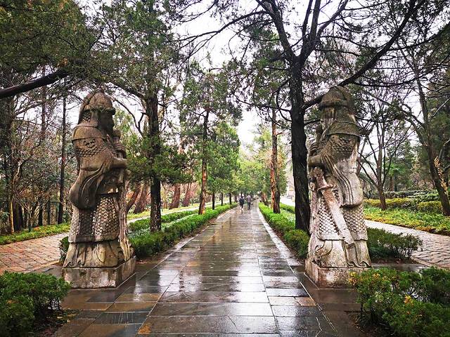 过此折过此华表向北,列石翁仲8躯,文臣武将各四,分立道旁。和石兽一样也是整块巨石雕凿而成。