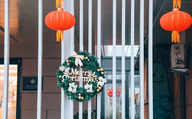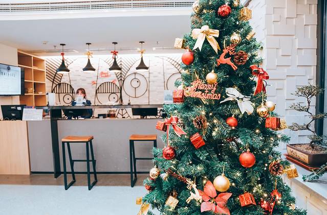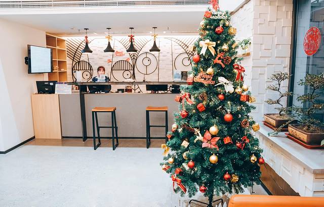 因为刚刚过去不久的圣诞节,所以大堂里还有很多的圣诞原素,最让人瞩目的,自然是这颗挂满礼物的圣诞树。