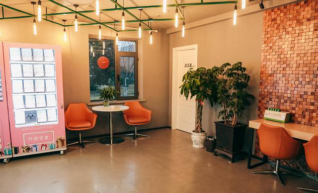 面对大堂的左手边,是电梯间和休息室,休息室内也有桌椅,可以办公。
