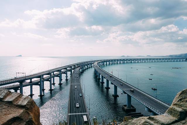 大连的跨海大桥,又被称之为星海湾大桥。是中国辽宁省大连市境内连接沙河口区与西岗区的跨海通道,位于黄海水域上,是辽宁省东部城市主干道路的组成部分。