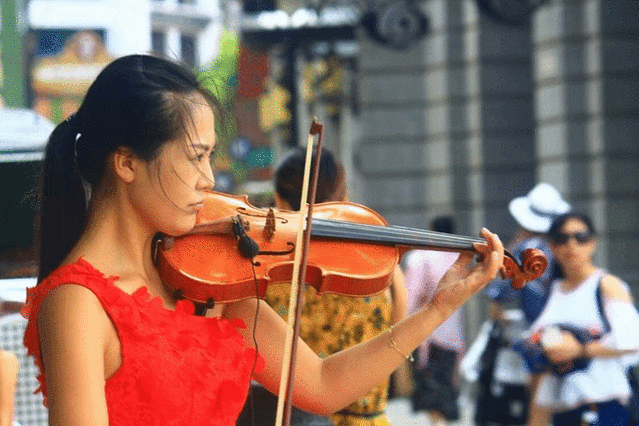 南洋街还有美女拉小提琴,走到哪儿都能听到美妙的音乐声。