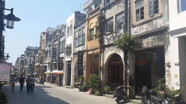 骑楼老街是 海口 市一处最具特色的街道景观。这里有许多老式建筑,其中最古老的建筑四牌楼建于南宋,距今已有700多年的历史,是 中国 十大历史文化名街之一。