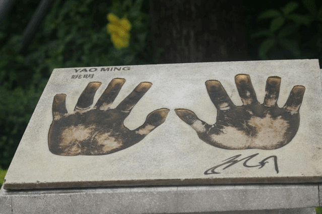 进了景区大门,就是星光大道,有很多明星手印,姚明最受欢迎,都被摸得褪色了。