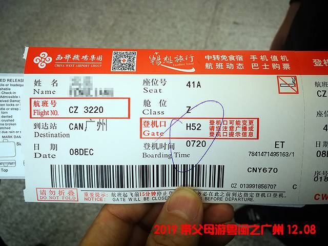 12月8日,启程。CZ3220 西安 至 广州 ~