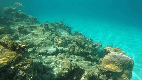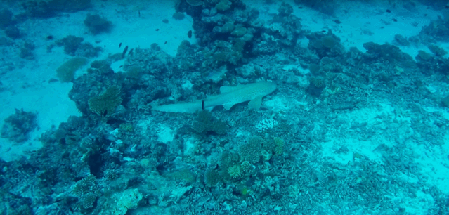 小爱也跟着下水啦!潜水点的水下环境很不错,和岸边不能同日而语!我发现了白鳍鲨、黑鳍鲨、梭鱼、礁鱼、海龟和不同种类的珊瑚鱼的身影,给大家欣赏一下: