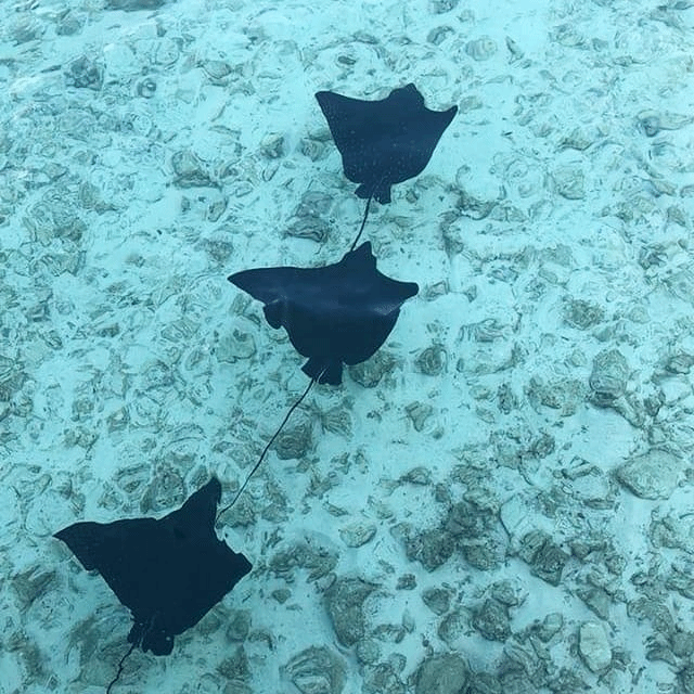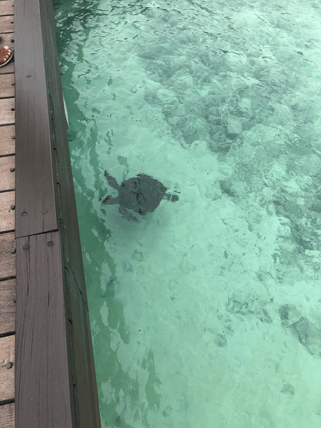 300-332的水屋靠着岛屿房礁(House reef)一侧,而且浪小不扎脚,游泳浮潜都更安全。所以小爱建议住在3号开头的水屋。另外大家也可以在通往水上餐厅的栈道附近以及公共泳池对外的海域浮潜,鱼比较多。
