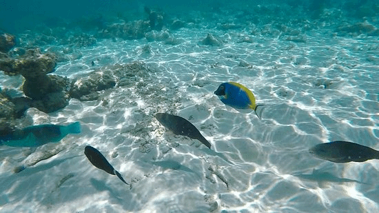 眼看手勿动,不要触摸鱼类和珊瑚,更不要折珊瑚,如果被发现了有可能处以5000美元罚款!为什么说外海的浮潜环境更好,就是因为人为干扰更少,水屋附近不少碎珊瑚是被人类脚蹼踩碎的……