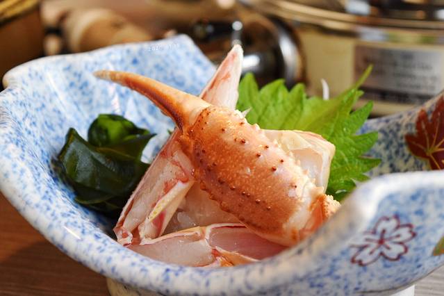这店有黄帝蟹与日本松叶蟹,选好蟹,服务员捧上活蟹让客人看过,满意就立即做。四种做法:蒸、刺身、灸烧、火锅,根据不同的部位,师傅会帮处理。火锅是用蟹汤做汤底,吃完后放米下去煮成粥。